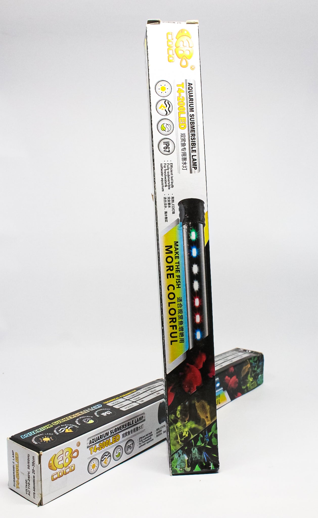 Lámpara LED compacta de 20 cm con múltiples colores, ideal para acuarios pequeños. Su iluminación vibrante realza los colores de los peces y crea un ambiente atractivo.