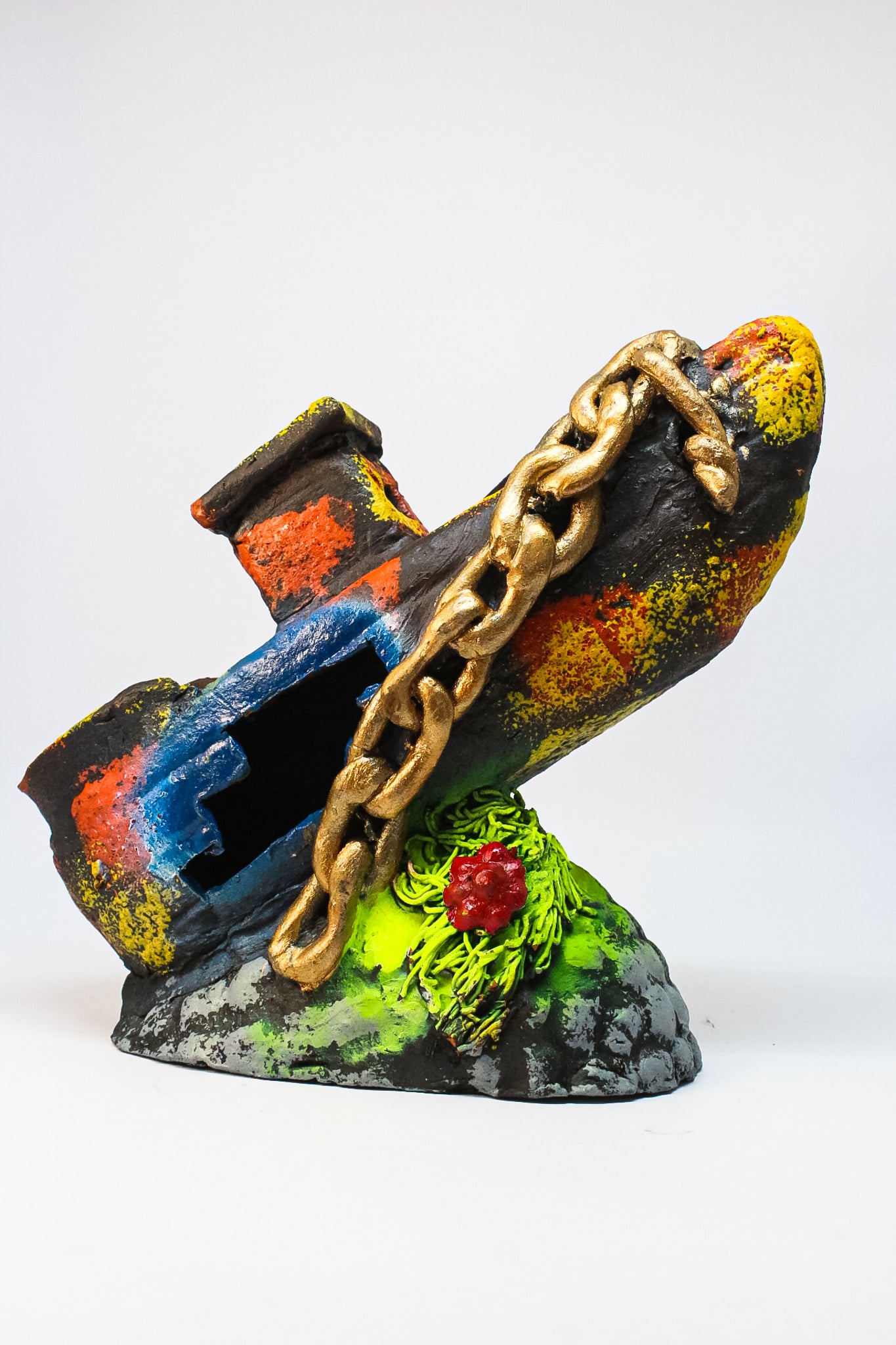 Barco grande con cadena decorativa, ideal para acuarios grandes. Su diseño realista ofrece un refugio funcional mientras añade un toque atractivo de temática pirata.